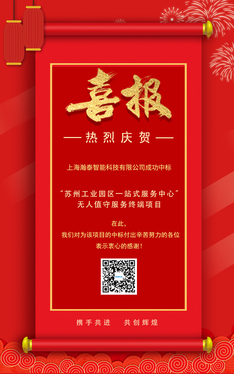 瀚泰喜报 | 瀚泰智能中标“苏州工业园区一站式服务中心”无人值守服务终端项目,喜迎开门红