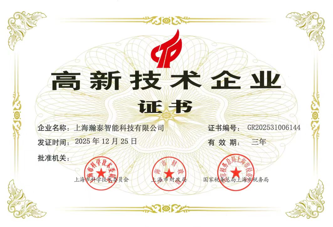 近日,上海瀚泰智能科技有限公司顺利通过国家高新技术企业复评,成功斩获“高新技术企业证书”。这一权威认证,是对瀚泰智能在核心自主知识产权、科技成果转化能力、研发组织管理水平及企业成长性等方面综合实力的高度认可与肯定。成为“国家高新技术企业”,不仅是一份荣誉,更是一种责任和动力。